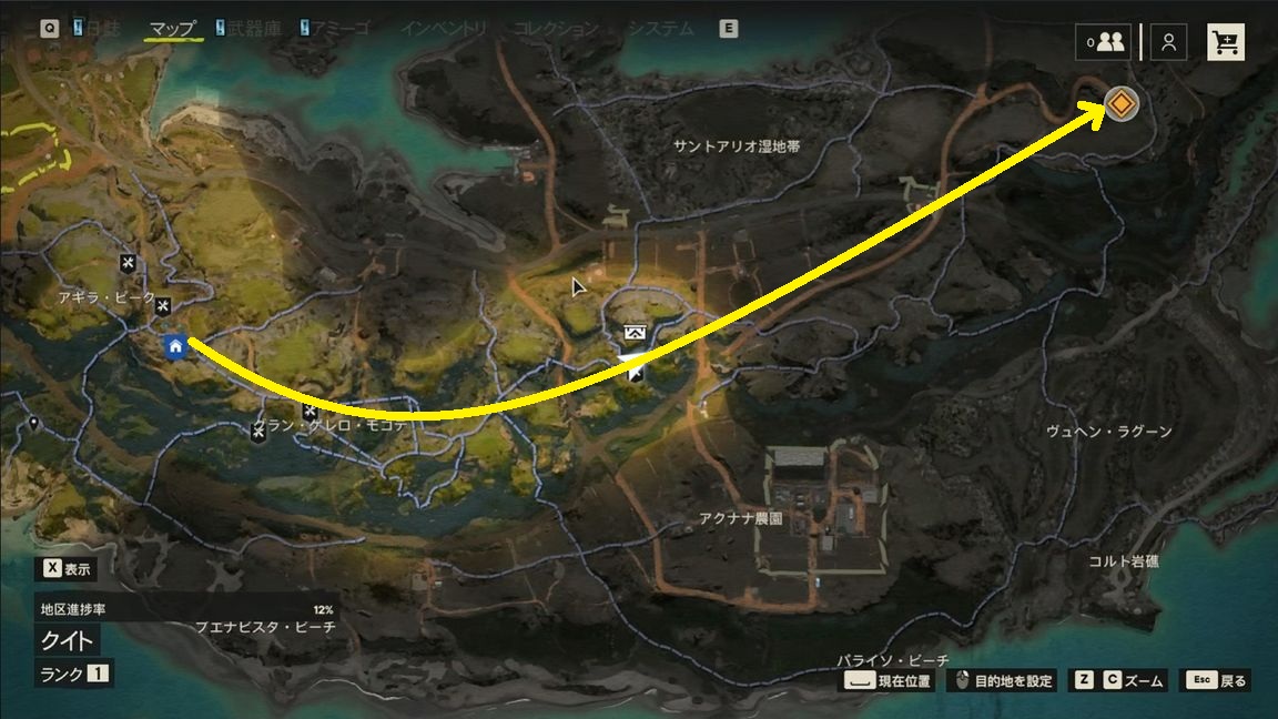 そういう場合は、例外的に、緊急避難的に対処することにして、プレイ中は基本的にファストトラベルはなしで。ジャイロコプターが使えるようになるまでは、移動がきついかも。
