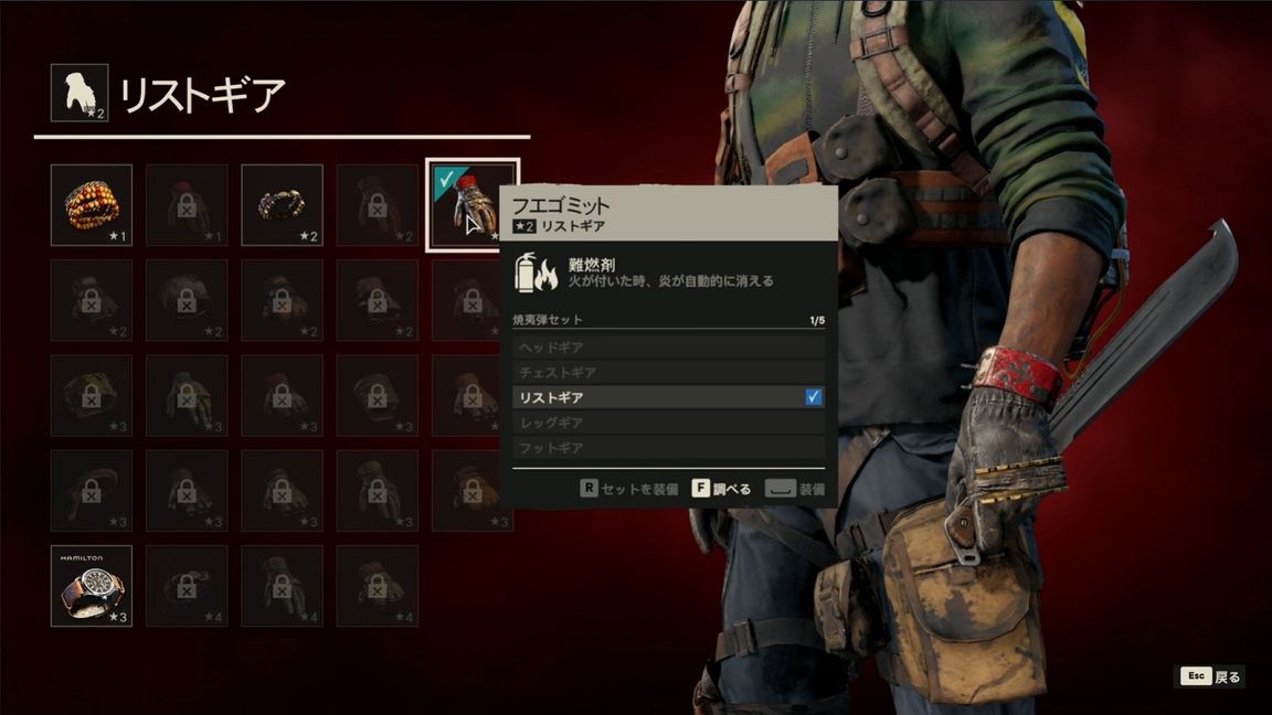 もう一つの防具は、火が点いた時に炎が自動的に消える「フエゴミット」。